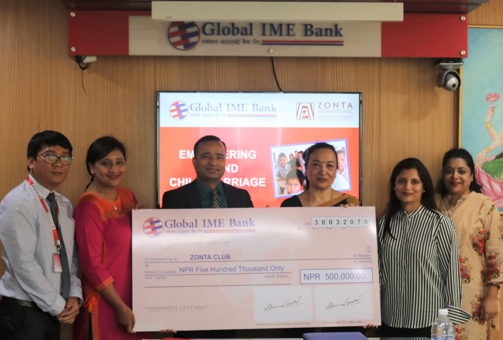 ज्ञानमाण्डू।ग्लोबल आइएमई बैंक लिमिटेडले बैंकको संस्थागत सामाजिक उत्तरदायित्वअन्तर्गत जोन्टा क्लब, काठमाडौंलाई बालविवाह अन्त्यका लागि सशक्तीकरण अभियानमा रु ५ लाख सहयोग गरेको छ । सोमबार आयोजित एक कार्यक्रममा बैंकका कामु प्रमुख कार्यकारी अधिकृत महेश शर्मा ढकालले जोन्टा क्लब, काठमाडौंका अध्यक्ष मीरा ज्योतीलाई उक्त रकम हस्तान्तरण गरेका छन् ।