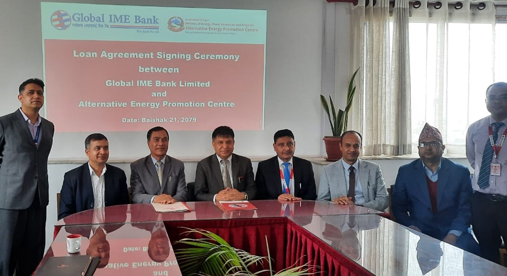 बुधबार उक्त समझदारी पत्रमा ग्लोबल आइएमई बैंक लिमिटेडका प्रमुख कार्यकारी अधिकृत रत्नराज बज्राचार्य तथा वैकल्पिक ऊर्जा प्रवर्द्धन केन्द्रका कार्यकारी निर्देशक डा. मधुसुधन अधिकारीले ऋण सम्झौता पत्रमा हस्ताक्षर गर्नुभएको बैंकले जनाएकाे छ ।